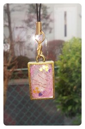 銅線を巻いた水晶が埋め込んであるラメ紫のキーホルダーです。ゴールドの星も可愛いです。お手持ちのペンダントヘッドにもご使用いただけます。