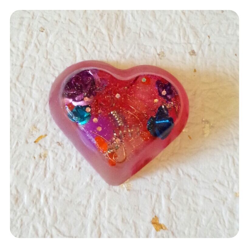 青、水色、紫、ピンクの薔薇入りオルゴナイト。水晶・大きめビーズも埋め込んであります。ちょっとゴージャスな雰囲気です。幅4.5㎝、高1.7㎝